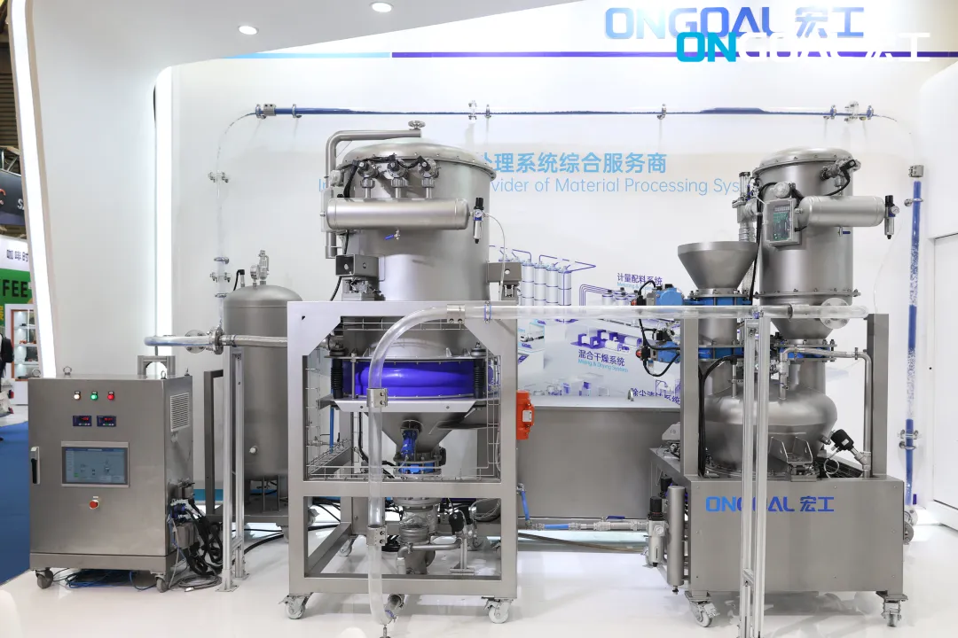 此次參展,宏工科技攜特別研發(fā)的IBC混合機(jī)、 SHBT砂磨機(jī)等關(guān)鍵設(shè)備場參展,同時,作為氣力輸送前沿技術(shù)的引領(lǐng)者,還展示了低能耗、適合單一物流大批量輸送的正壓密相氣力輸送系統(tǒng)。