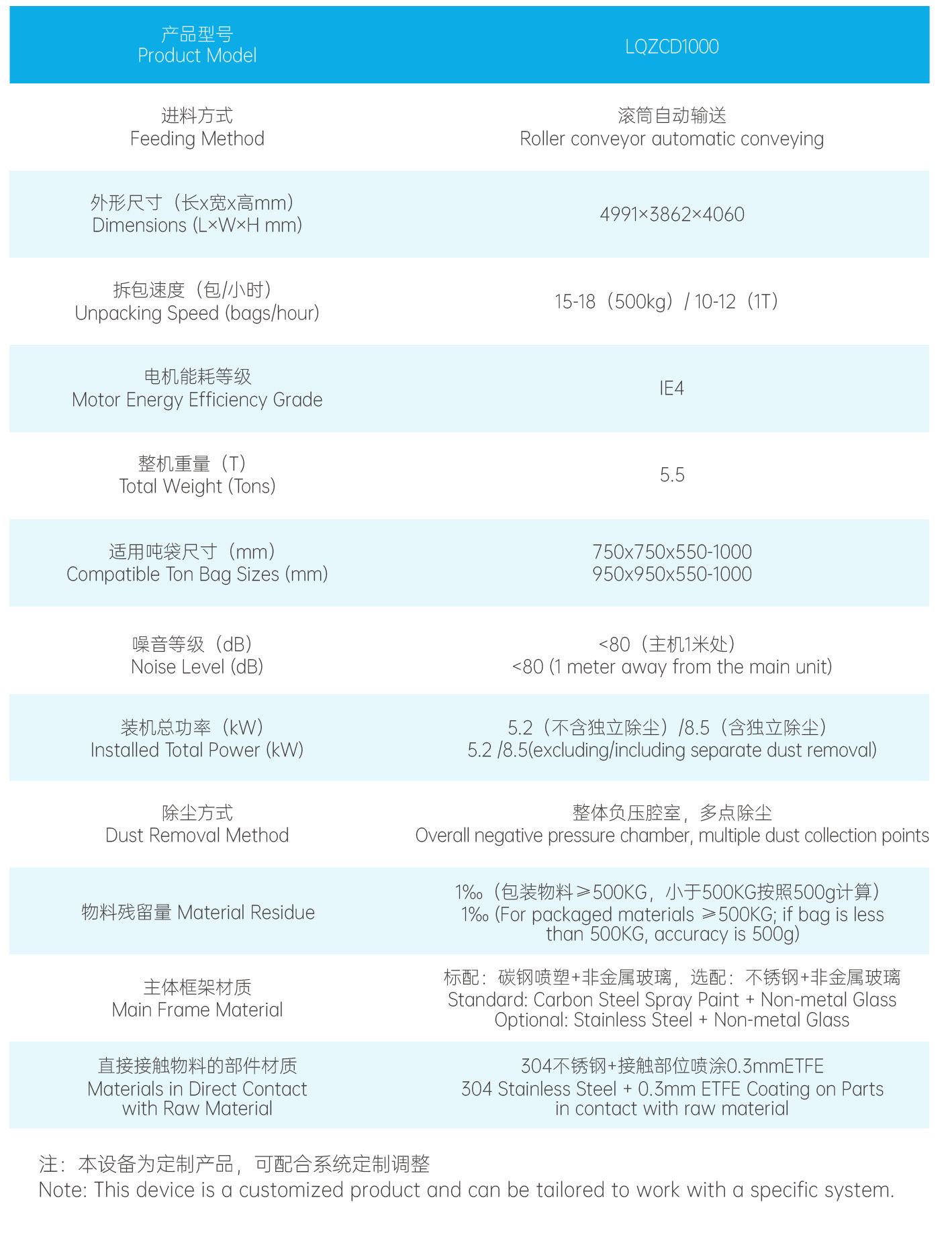 全自動(dòng)噸袋拆包機(jī)主要用于300-1000kg噸袋物料的全自動(dòng)連續(xù)拆包,可實(shí)現(xiàn)自動(dòng)送料、自動(dòng)抱夾、工位流轉(zhuǎn)及托盤回收、自動(dòng)抓袋、自動(dòng)破袋、自動(dòng)抖袋卸料、自動(dòng)廢袋整理及回收等功能。